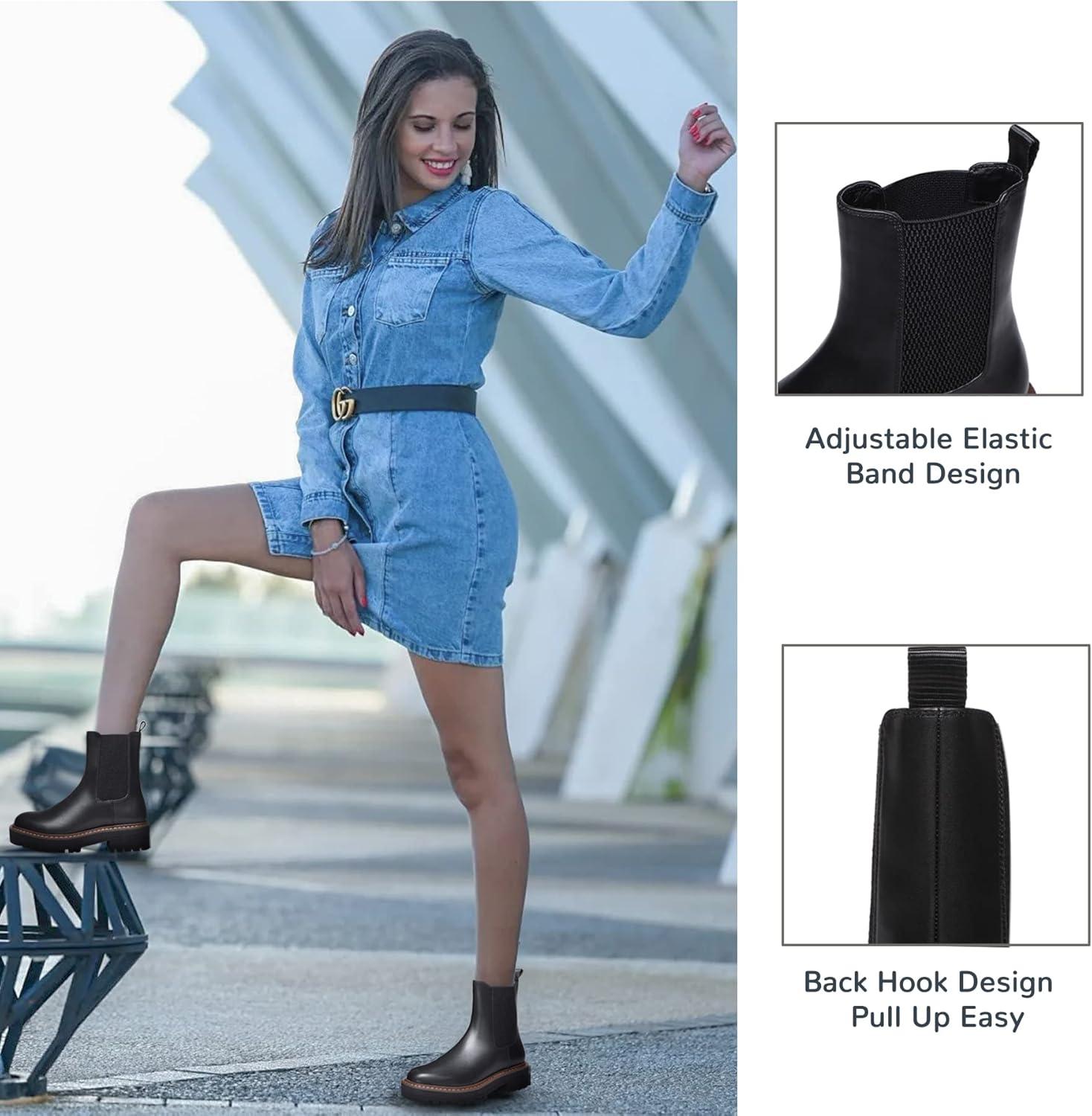 Get your hands on our newest Athlefit Women’s Chelsea Ankle Boots Platform Slip On Chunky Heel Lug Sole Leather Booties(Black) and enjoy a limited-time discount offer.