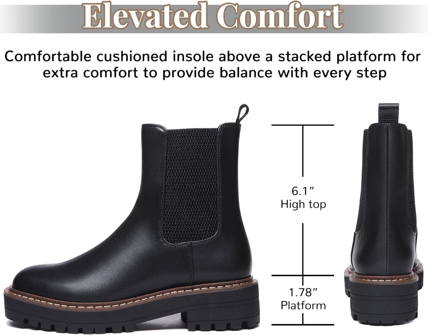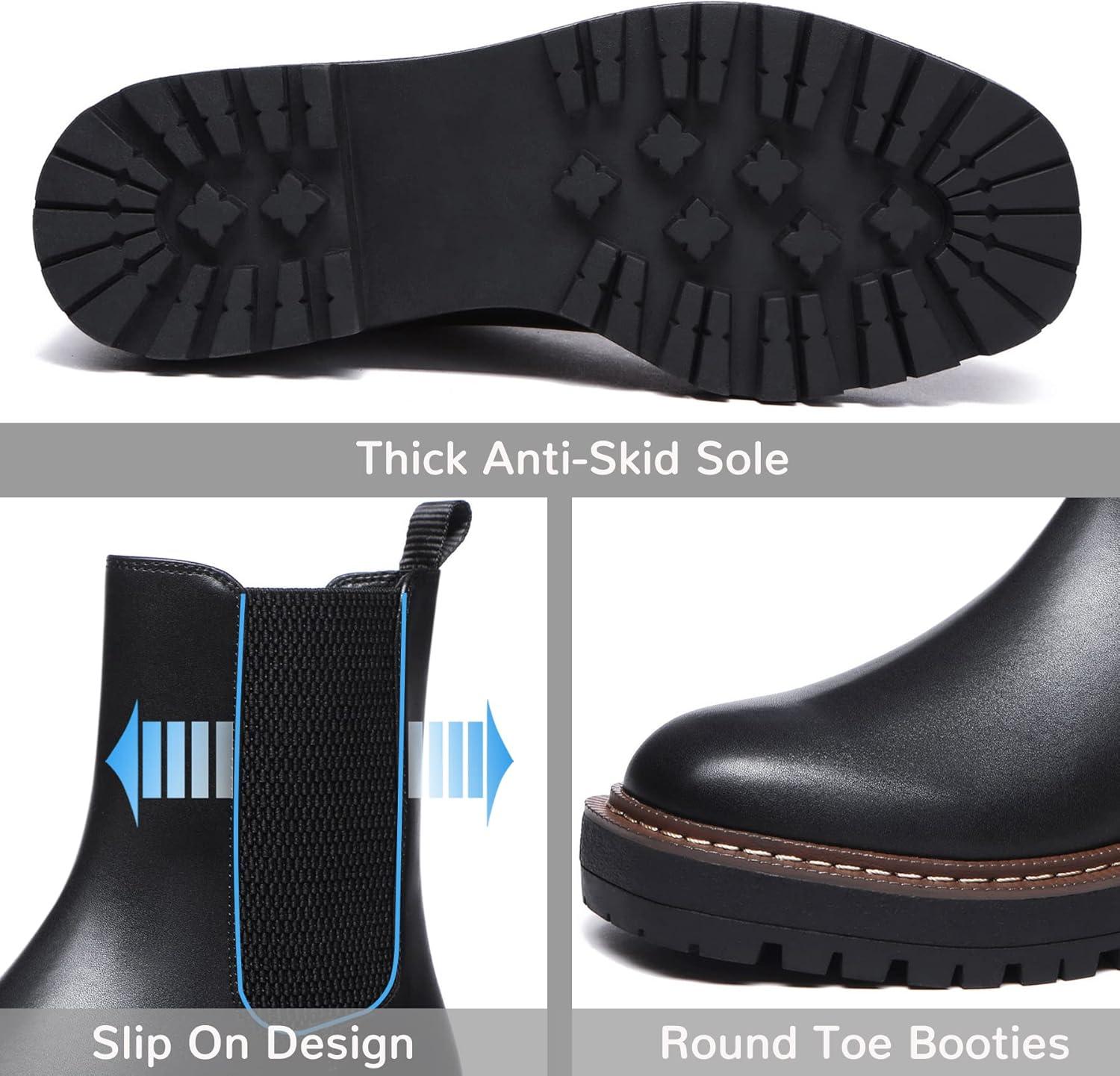 Athlefit Women’s Chelsea Ankle Boots Platform Slip On Chunky Heel Lug Sole Leather Booties(Black)