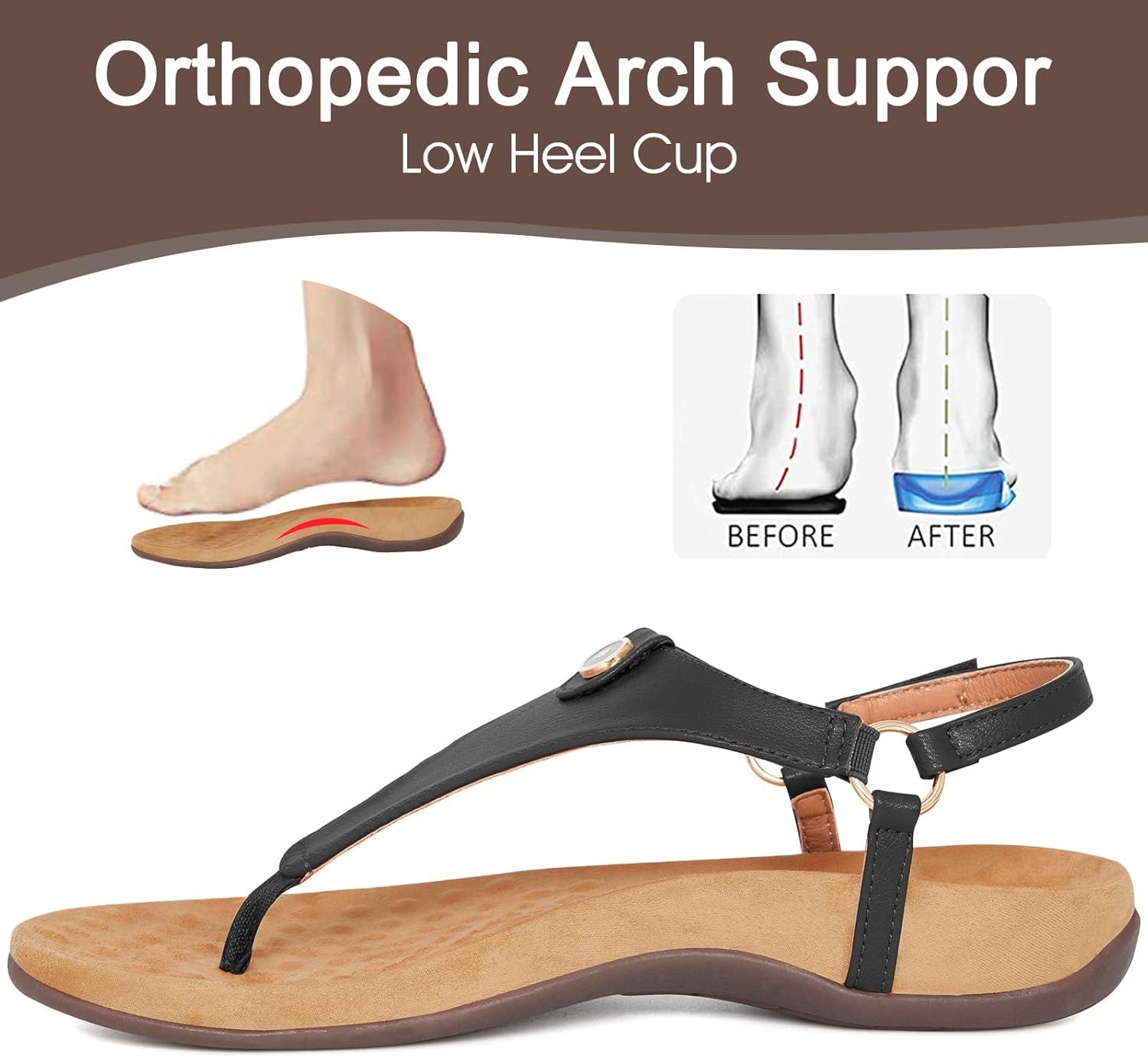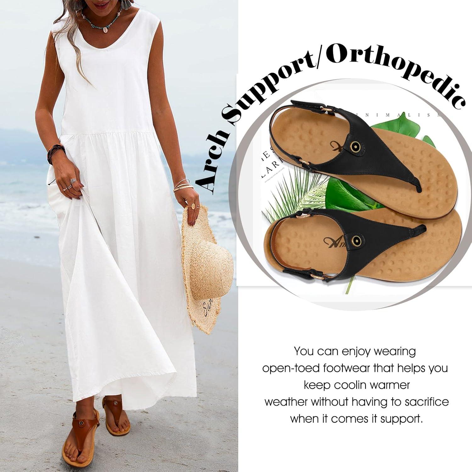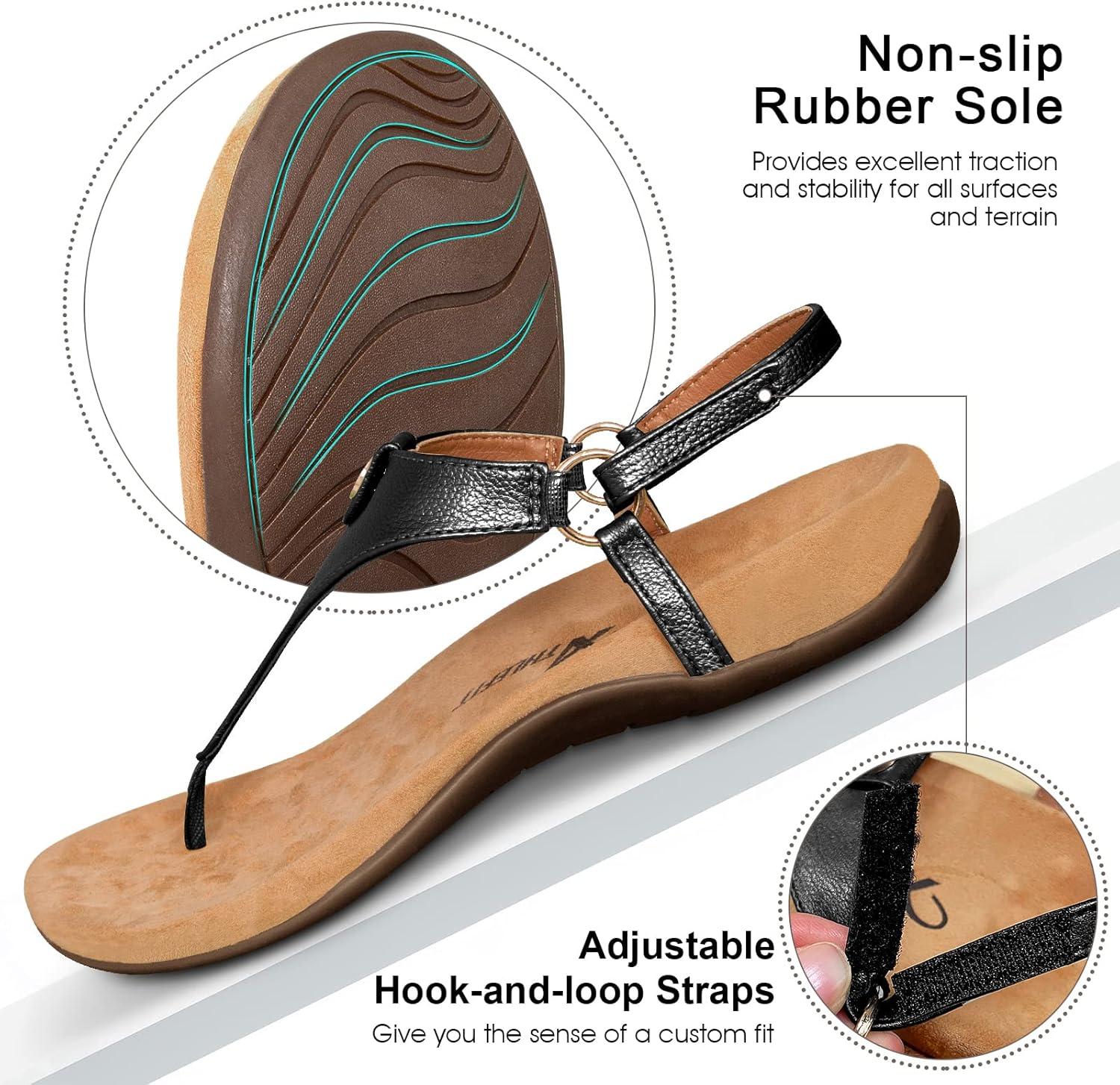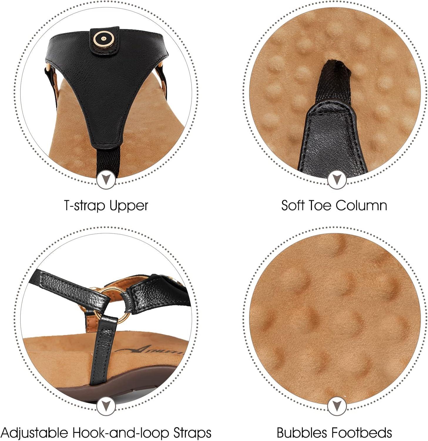 Athlefit Women’s Comfortable Orthopedic Sandals Thong Dressy T-Strap Orthotic Casual Summer Arch Support Sandals(02black)